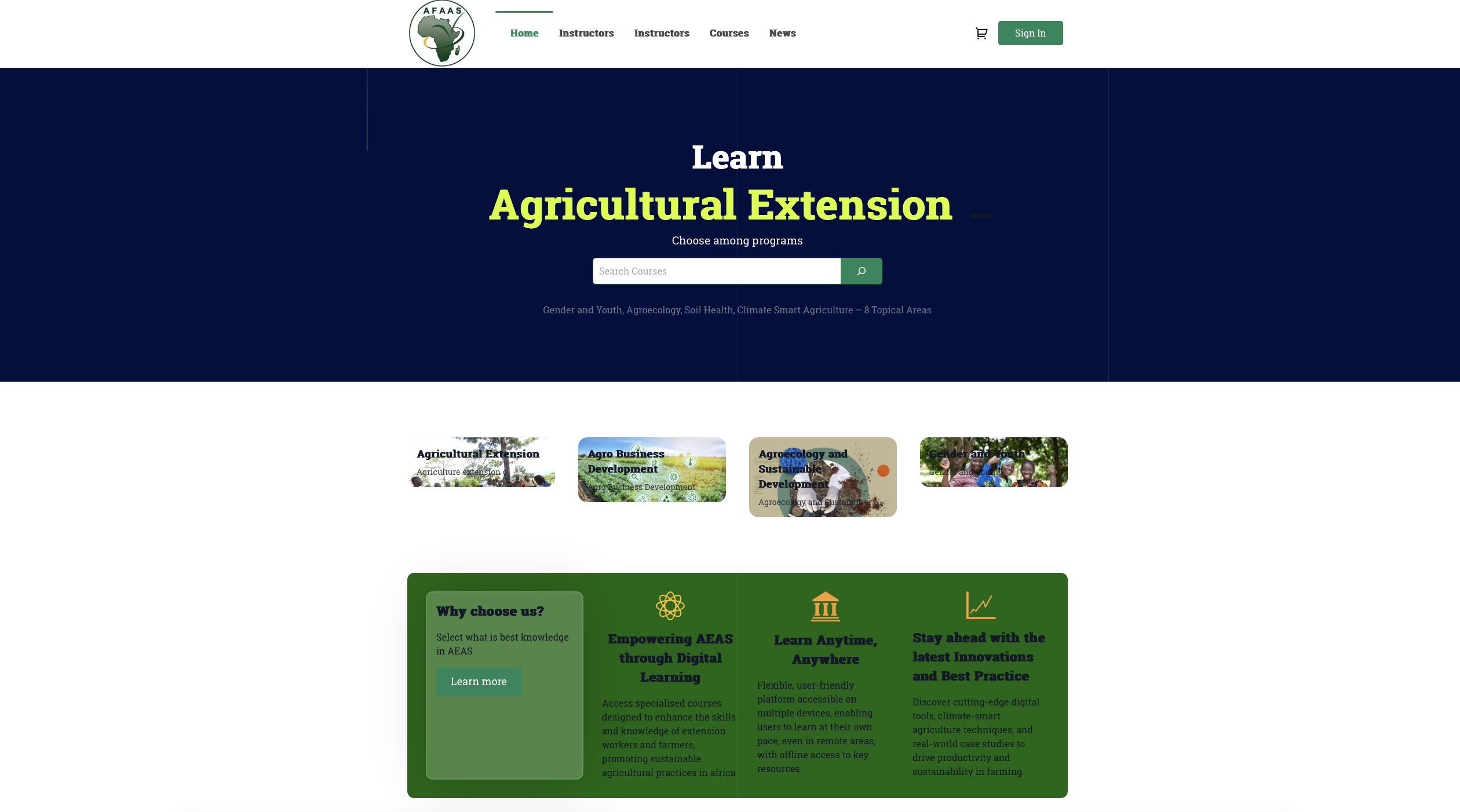 The Agricultural Extension Digital Learning Platform is an innovative online system designed to provide accessible, interactive, and high-quality training for Agricultural Extension and Advisory Services (AEAS) professionals.